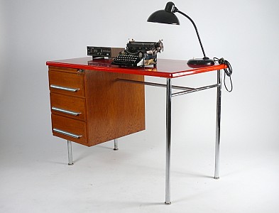 EIN ALTER STAHLROHR SCHREIBTISCH AUS DEN