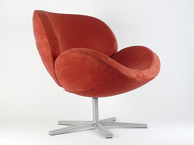 Beschreibung: SIE HABEN HIER DIE GELEGENHEIT EINEN KLASSE DESIGN SESSEL ZU ERWERBEN. SEINE SITZSCHALE IST EIFÖRMIG. DER VELOURSTOFF IM TERRACOTTAFARBTON. SIEHT AUS WIE ALCANTARA IST ABER SICHERLICH MICROFASER.