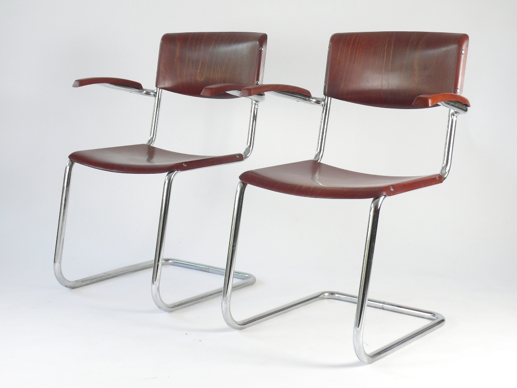 1 v2 BREMSHEY STAHLROHR STUHL GEMARKTE ORIGINALE UM 1950-60.
